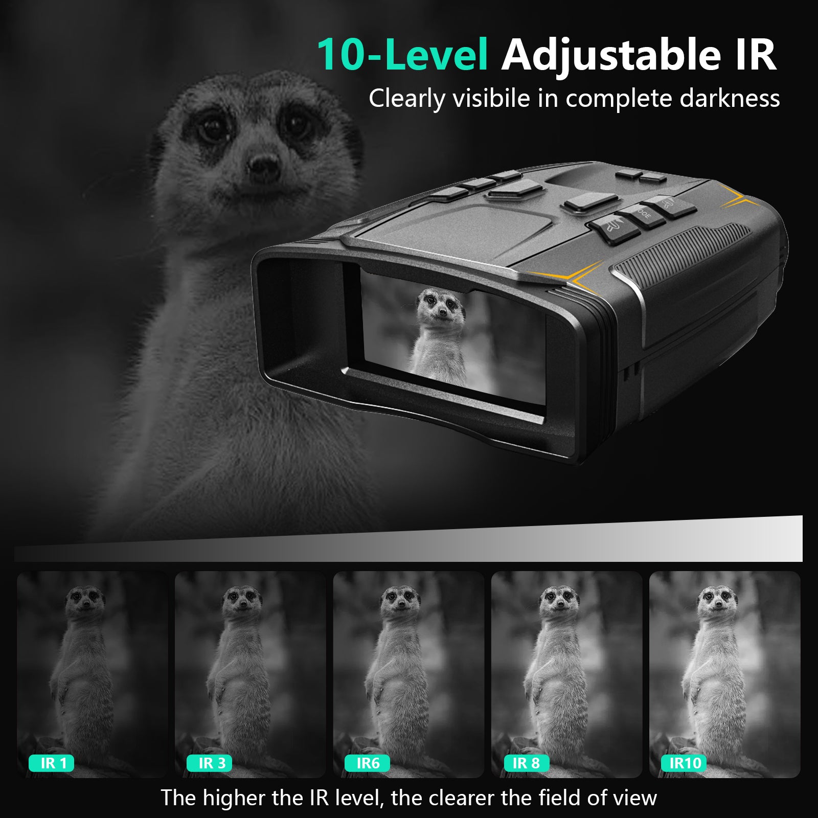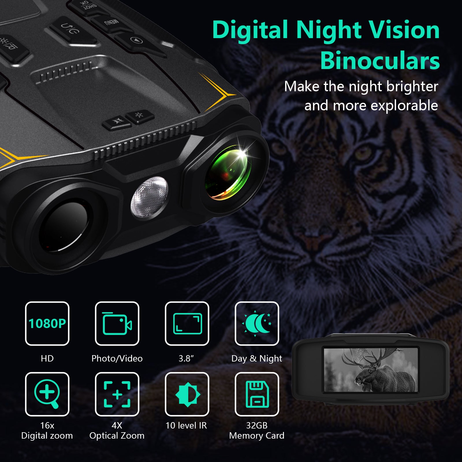 【Long-lasting Battery | 32GB Storage】 Night vision googles feature a built-in 5000mAh high-capacity battery with USB-C fast charging. It delivers 12 hours of operation with IR on and up to 18 hours with IR off. Comes standard with a 32GB high-speed TF memory card, making it an ideal choice for wilderness survival gear and security surveillance equipment.