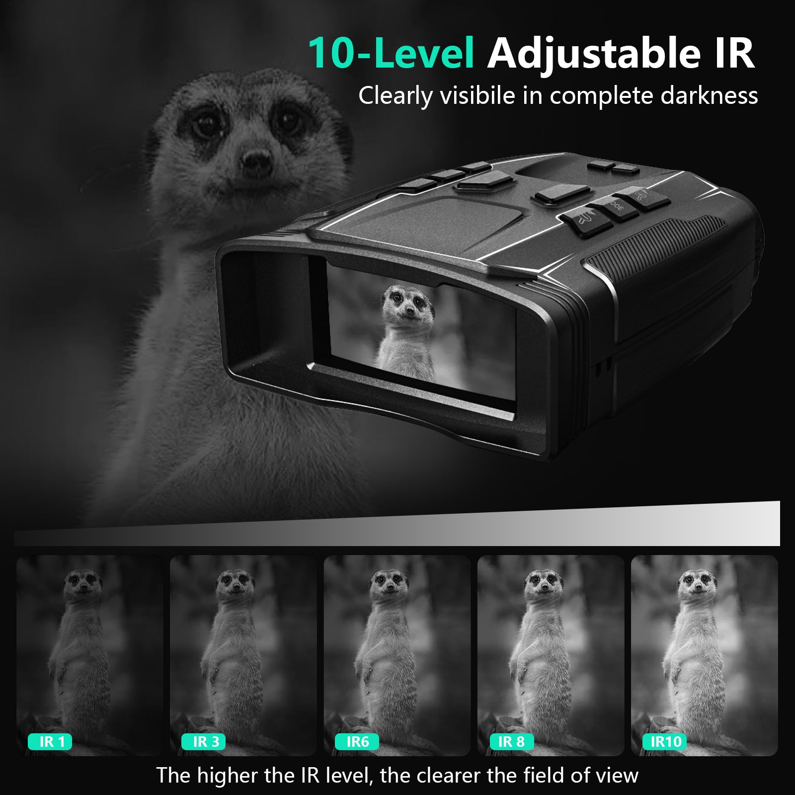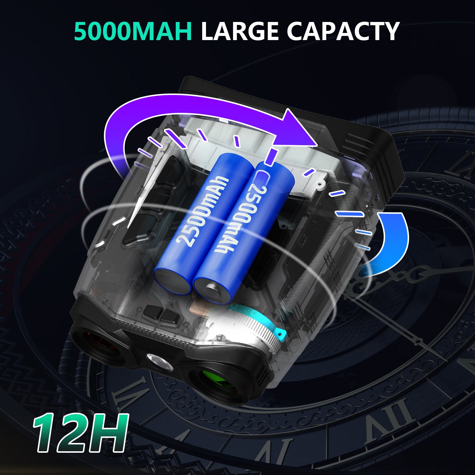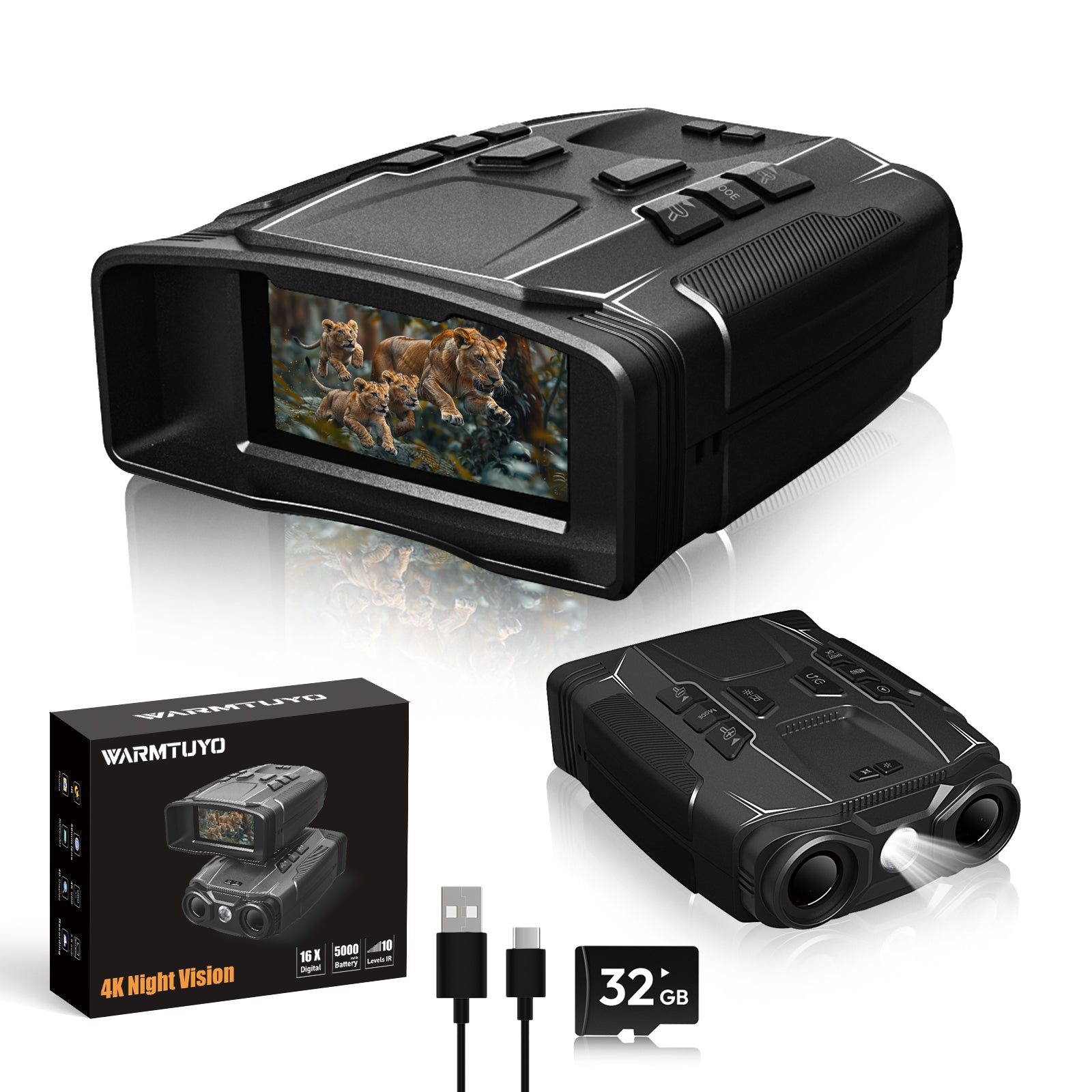 【Long-lasting Battery | 32GB Storage】 Night vision googles feature a built-in 5000mAh high-capacity battery with USB-C fast charging. It delivers 12 hours of operation with IR on and up to 18 hours with IR off. Comes standard with a 32GB high-speed TF memory card, making it an ideal choice for wilderness survival gear and security surveillance equipment.